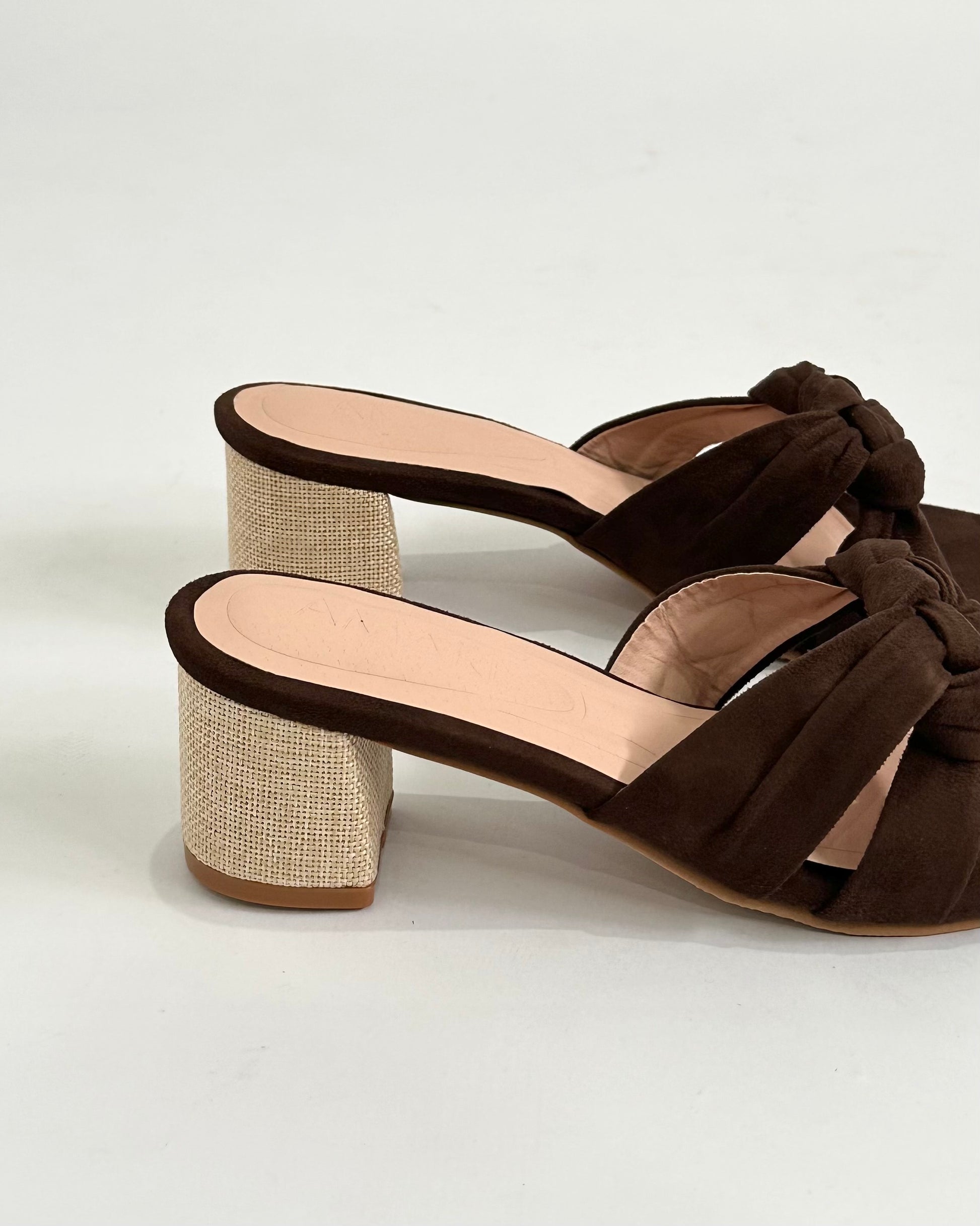 - El material es de gamuza y posee un taco de 5 cm forrado de fibra de yute