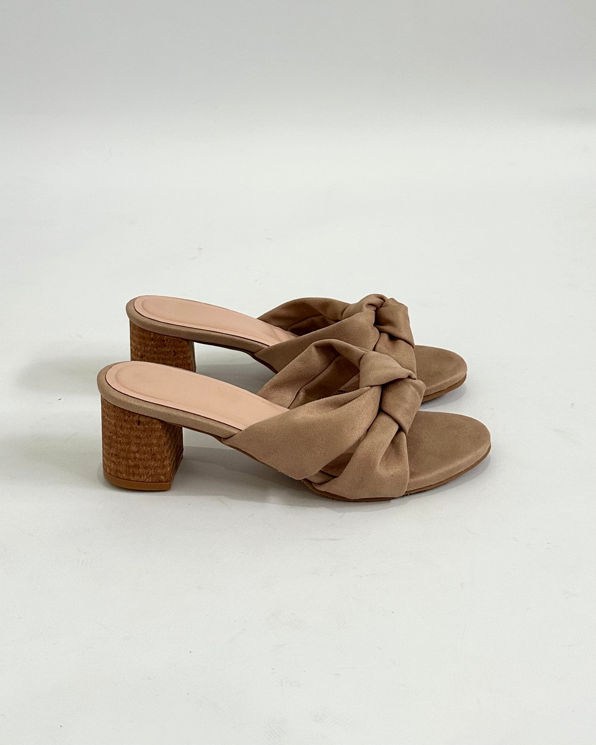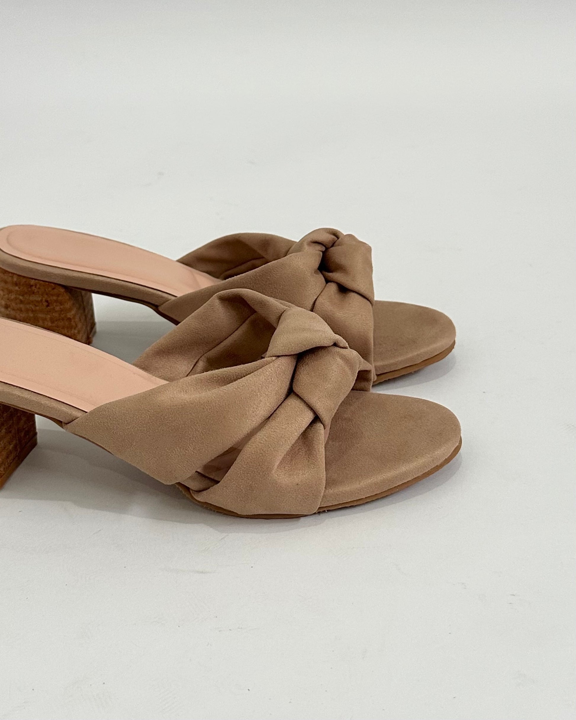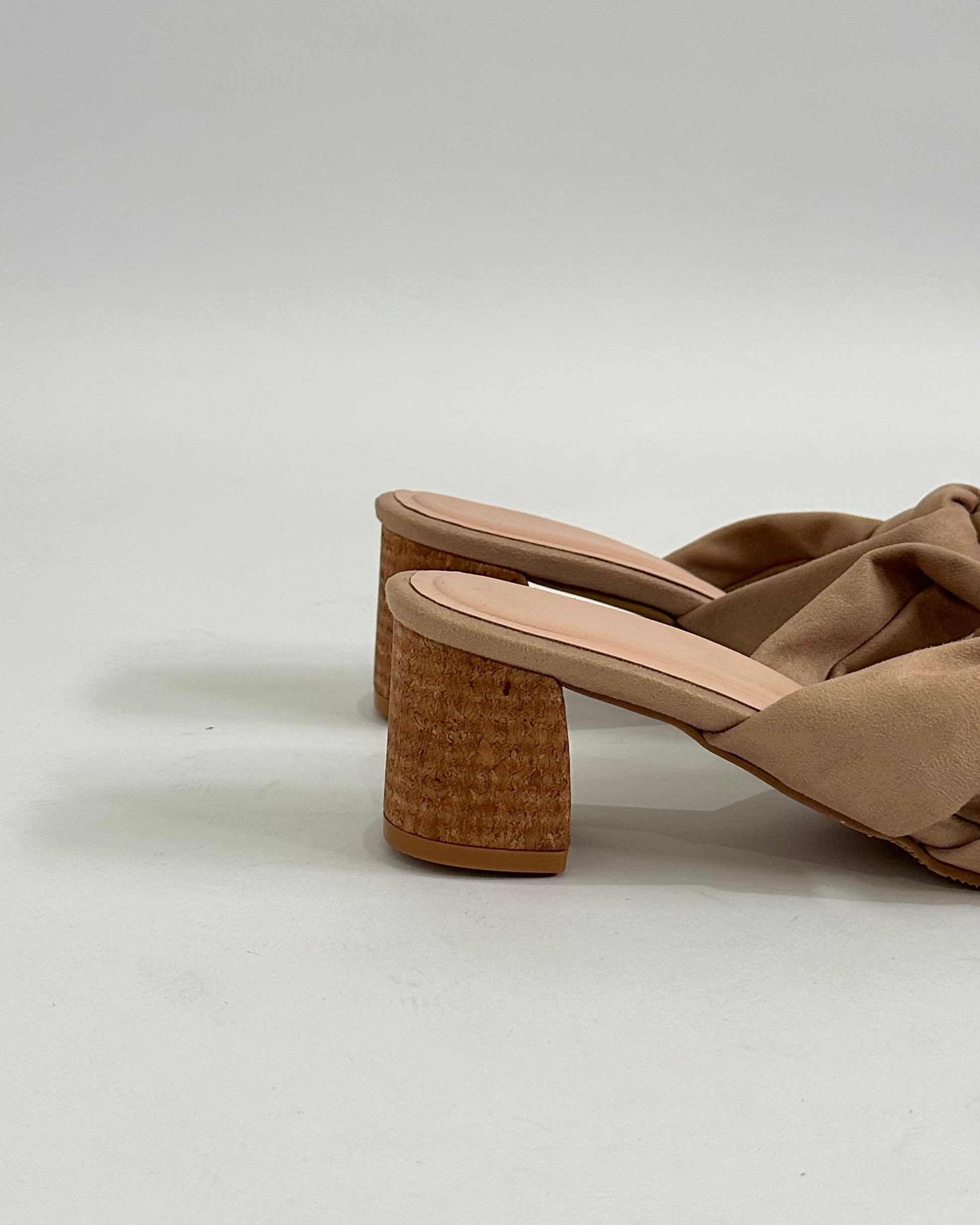 - El material es de gamuza y posee un taco de 5 cm de textura corcho